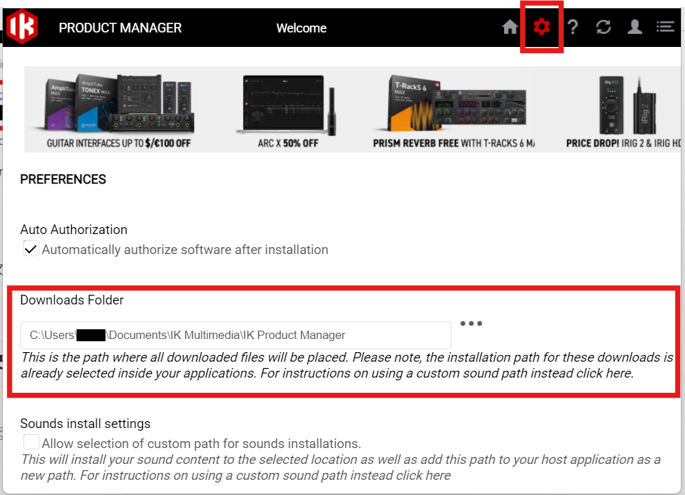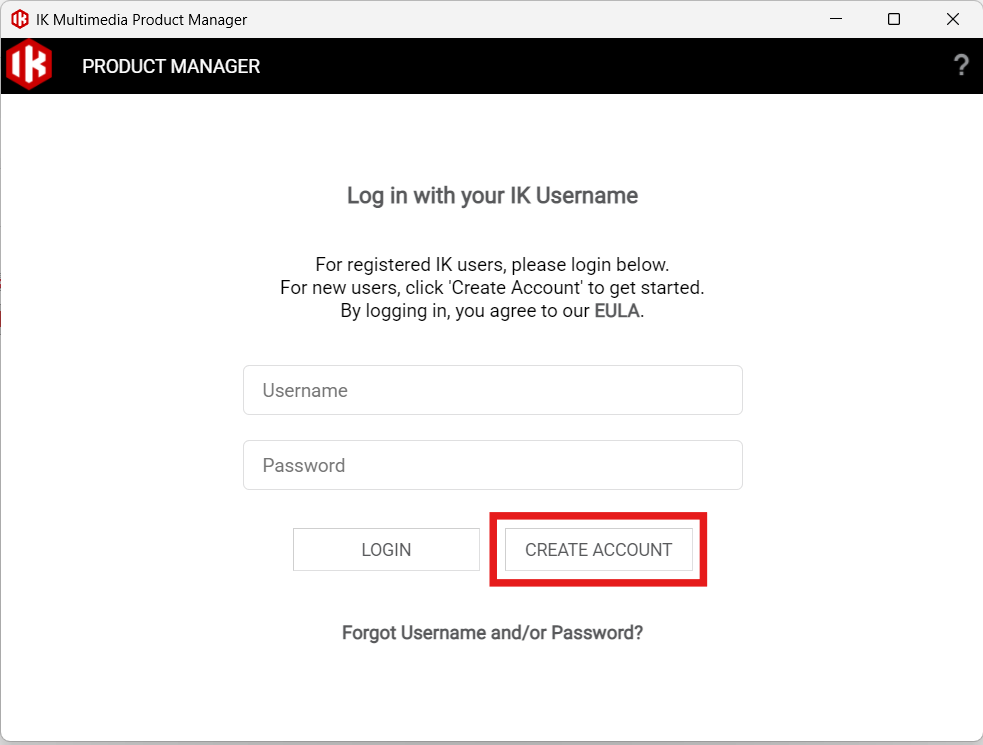 IK Multimedia のアカウント設定