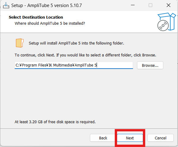 AmpliTube5 をインストールするファイルを設定します。