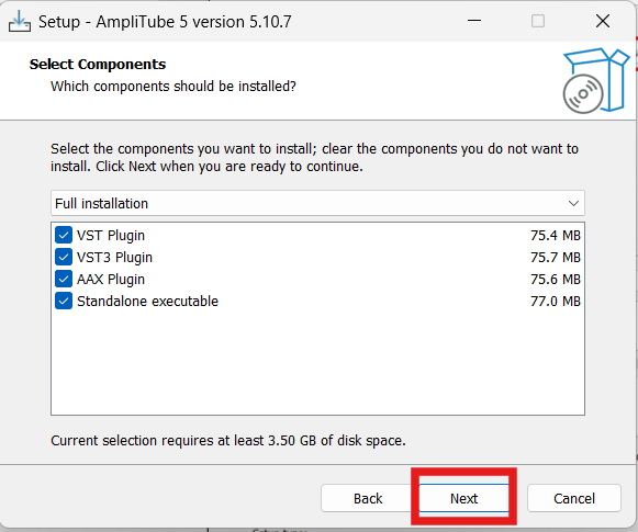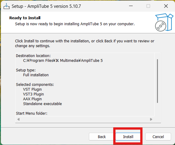 AmpliTube5 インストーラーの設定