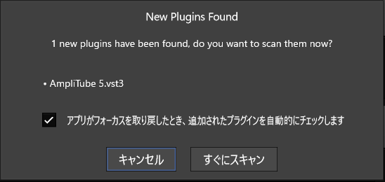 私はWaveform を使っているので起動時にこの確認が出て「スキャン」を実行すれば完了です。