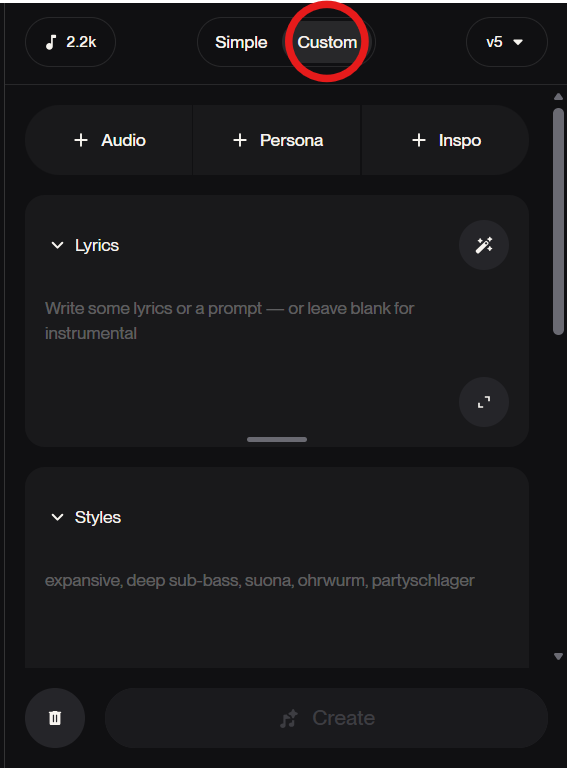 Suno AIのカスタム(Custom)モードを使って曲を作りたい!