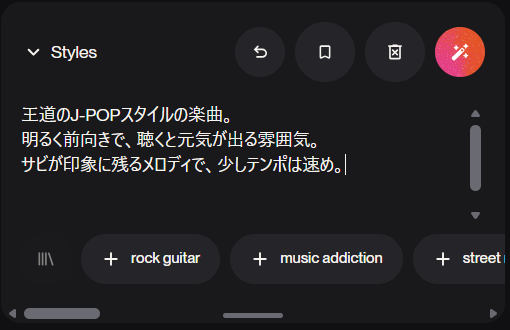 【手順④】曲の雰囲気を決める(プロンプト入力)