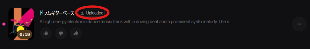 アップロードされた音源には、このように「Uploaded」という表記がつきます。